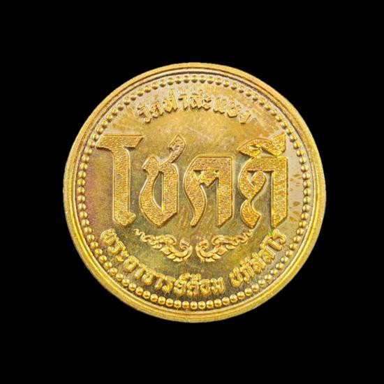 เหรียญโชคดีงานที่ระลึกอายุวัฒนมงคล 44 ปี เหรียญโชคดีเนื้อทองฝาบาตร ต๊อกโค้ต 5739 พระอาจารย์ต้อม วัดท่าสะแบง จ.ร้อยเอ็ด |