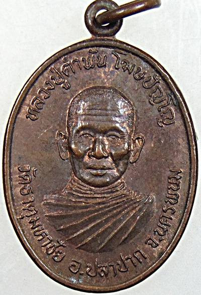 เหรียญนั่งพานปัญญาบารมี ลป.คำพันธ์ วัดธาตุมหาชัย จ.นครพนม ปี 2537 |