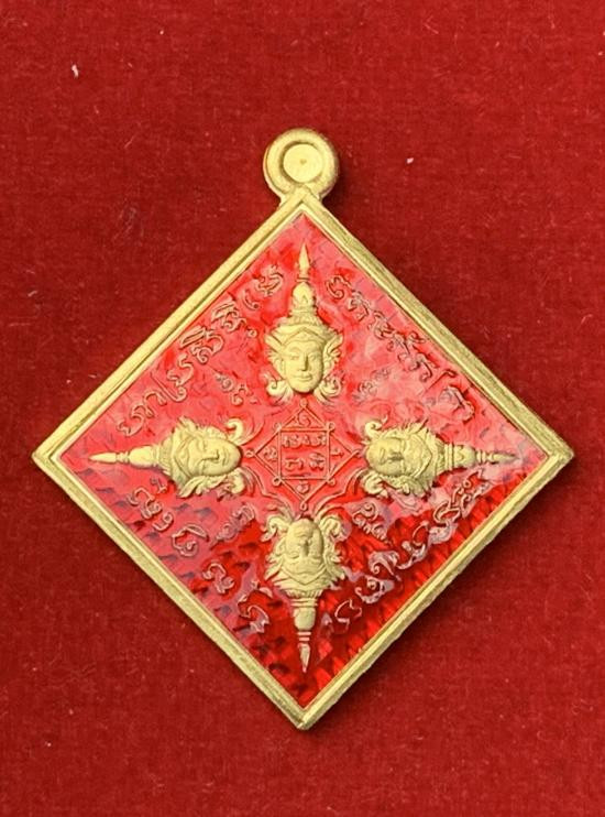 เหรียญพระพรหมสี่หน้า รุ่นยอดเมตตา หลวงปู่ศิลา สิริจันโท เมตตาอธิษฐานจิต เนื้อทองทิพย์ลงยาแดง |