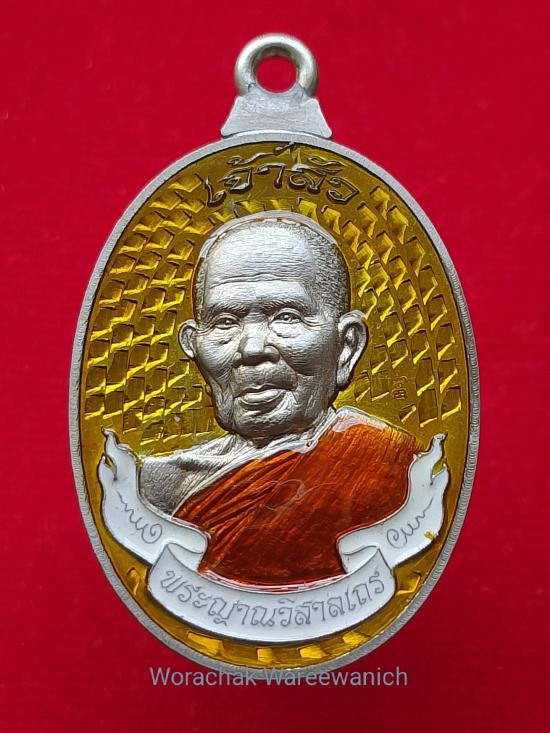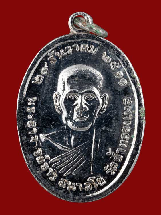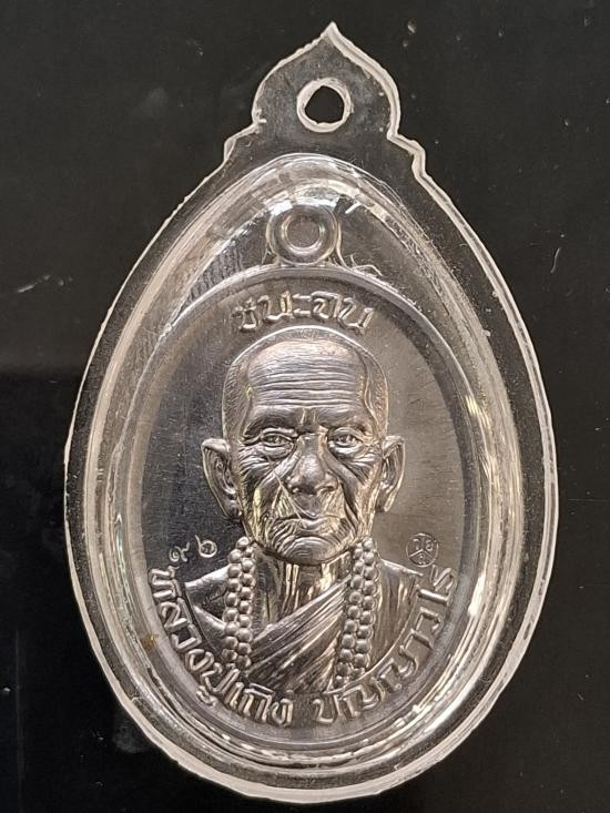 หลวงปู่มหาศิลา หลวงปู่ศิลา รุ่นอายุวัฒนมงคล พิมรุ่นแรกย้อนยุค เนื้อเงินลงยาสีเขียว เบอร์ 1176 |