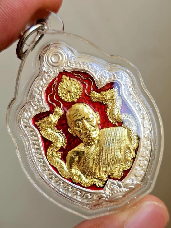 เหรียญ มังกรคู่ อายุวัฒนมงคล 81ปี หลวงปู่มหาศิลา หลวงปู่ศิลา สิริจันโท ธรรมอุทยาน วัดพระธาตุหมื่นหิน จ.กาฬสินธุ์ เนื้อฝาบาตรลงยาแดง ขอบเงิน เลข ๓๖๒ เลี่ยมกันน้ำ มีกล่องเดิม |
