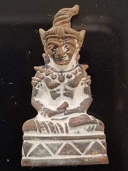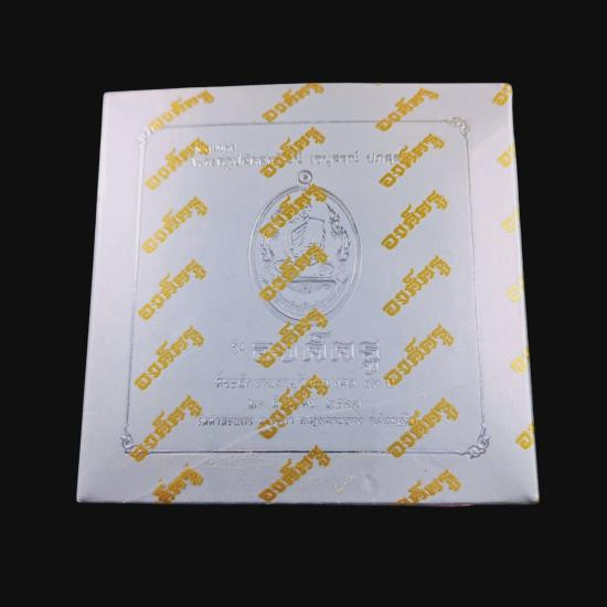 เคาะเดียวแดง.....พระผงนั่งเมฆ รุ่นเจ้าสัวฟ้าประทาน หลวงปู่แสน วัดบ้านหนองจิก จ.ศรีสะเกษ ปี 2560 (เนื้อผงจินดามณี ฝังตะกรุดทองคำ 5 ดอก โรยพลอย หายาก) แผ่นโค้ดเงิน ตอก number 6 |
