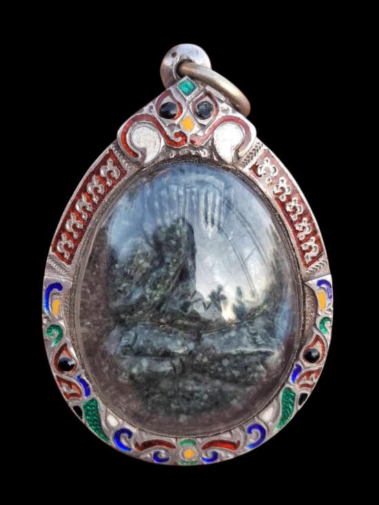 พระปิดตาเนื้อหินแกะ เลี่ยมเงินลงยาแท้สั่งทำ หลวงพ่อหนุน สุวิชโย วัดพุทธโมกพลาราม จ.สกลนคร |