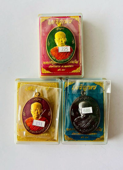 A2293.เซ็ตสุดคุ้ม 3 เหรียญ หลวงพ่ออุตมะ รุ่นเจริญผลปืนแตก หลวงปู่คำบุ วิหารเจดย์ศรีชมพู อุบลฯ กล่องเดิม เคาะดียวเเดง |