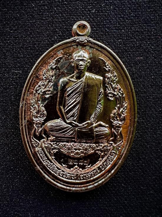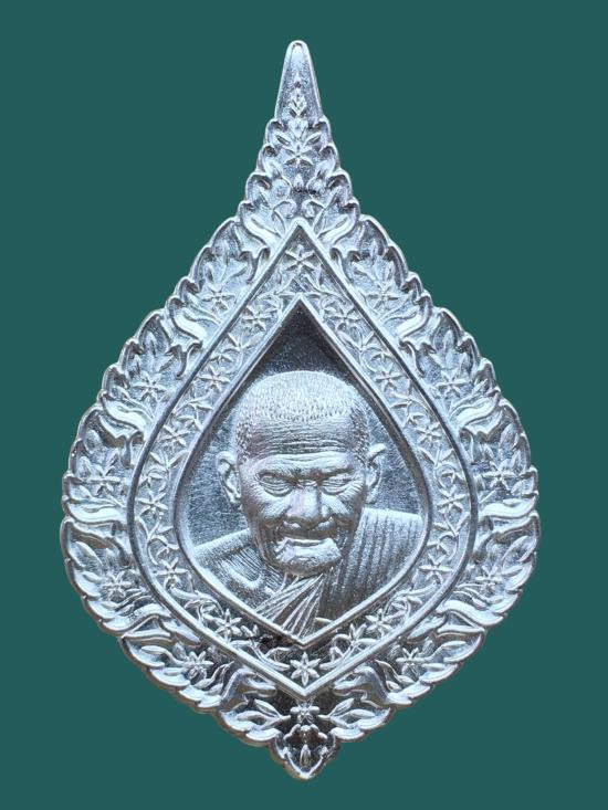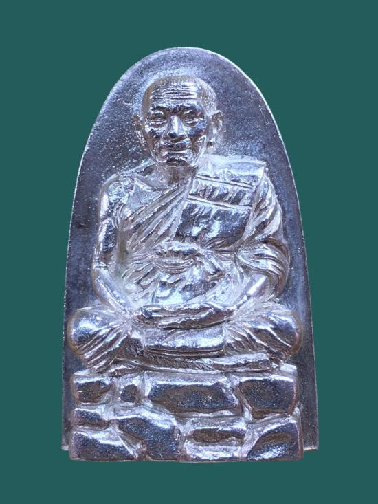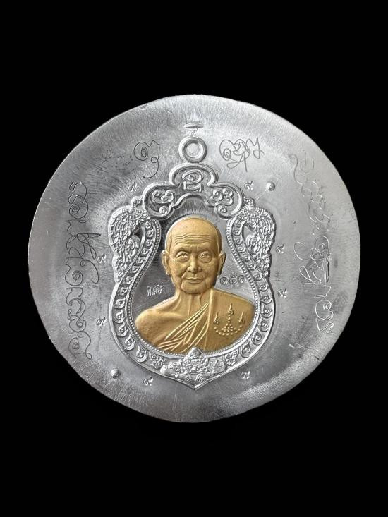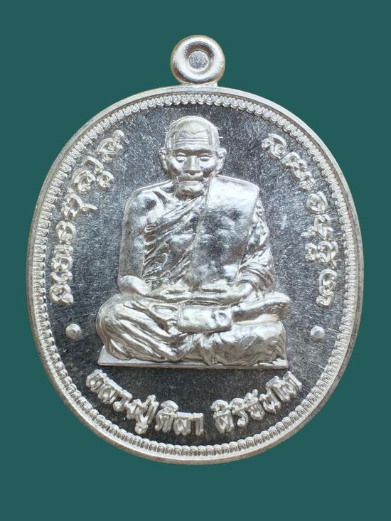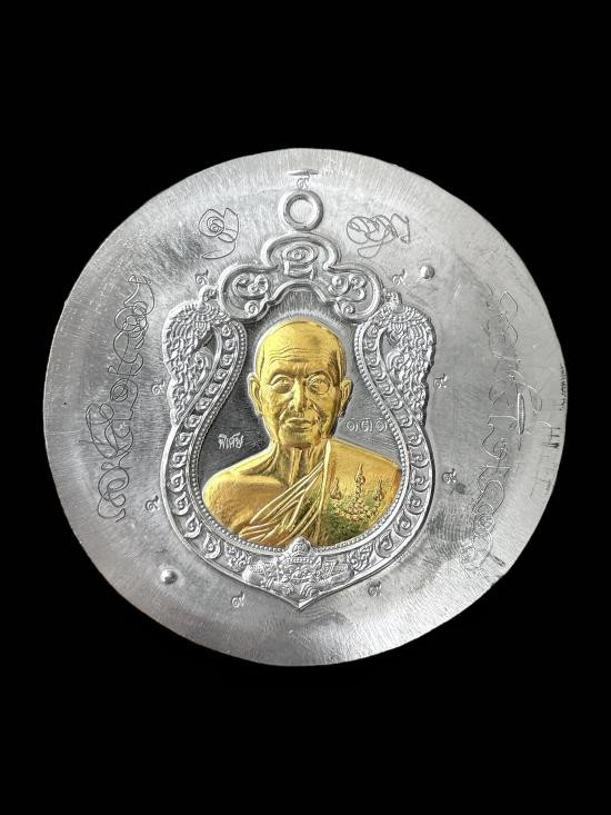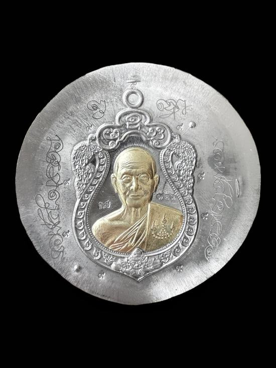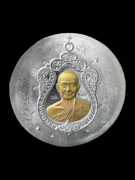 หลวงปู่ศิลา รุ่นมหาจักรพรรดิยอดรวยเหรียญปะฉลุเงินองค์นวะพรายทองขอบนวะพรายทองเงินด้าน |