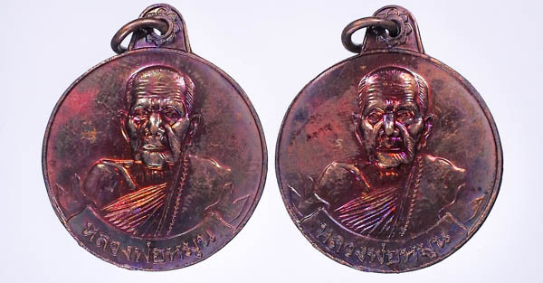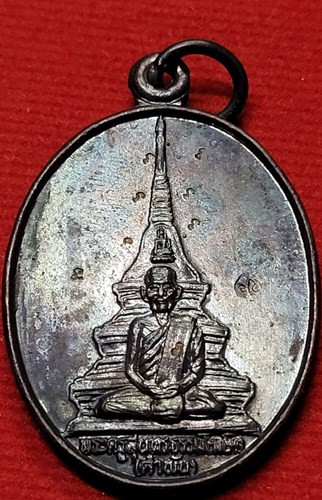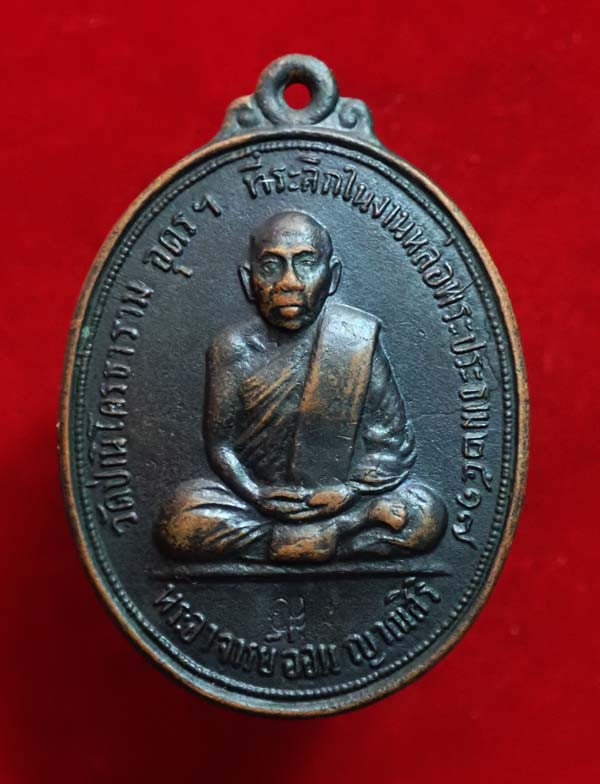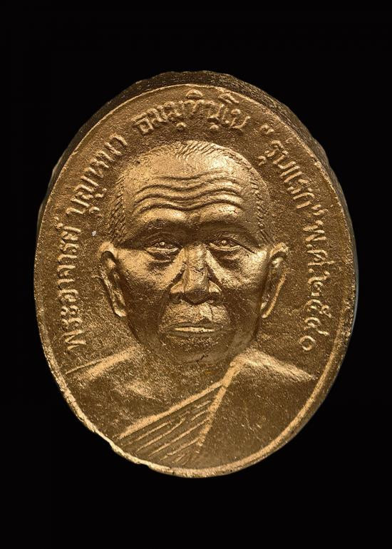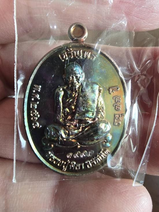 เหรียญรุ่น อุดมทรัพย์ หลวงปู่มหาศิลา สิริจันโท เนื้อทองแดงผิวรุ้งหน้ากากทองทิพย์ |