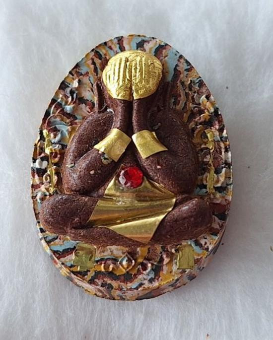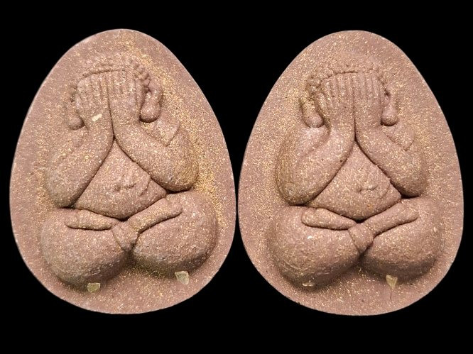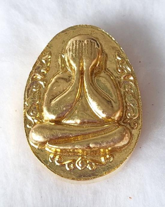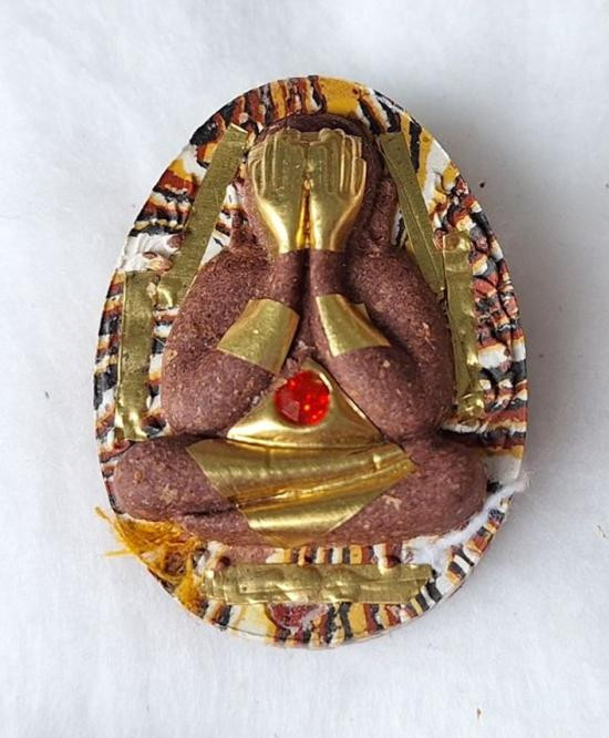 พระปิดตา รุ่น ล้าน รวย รวย หลวงปู่ศิลา สิริจันโท วัดสวนสงฆ์แกแปะ จ.กาฬสินธุ์ ปลุกเสก 9 วาระ เกษรโรยตะใบทอง เลข ๓๑ |