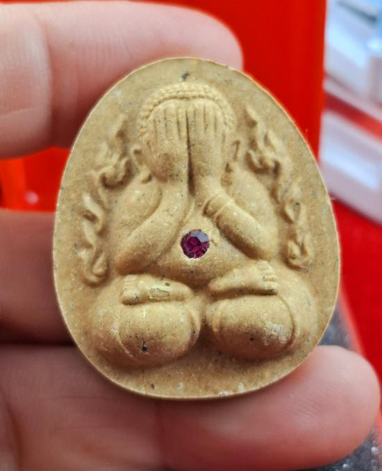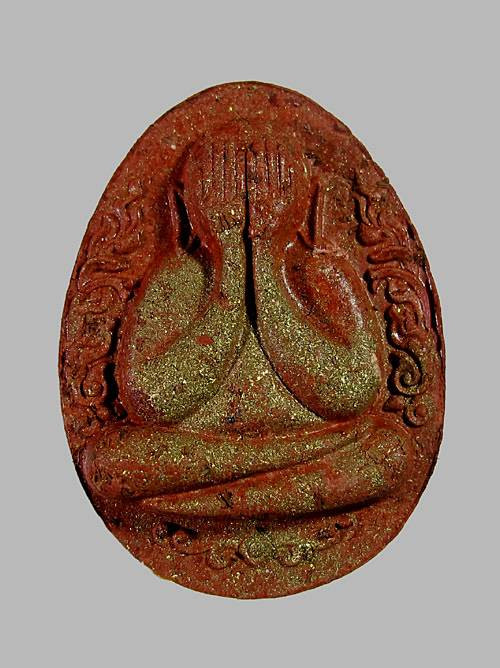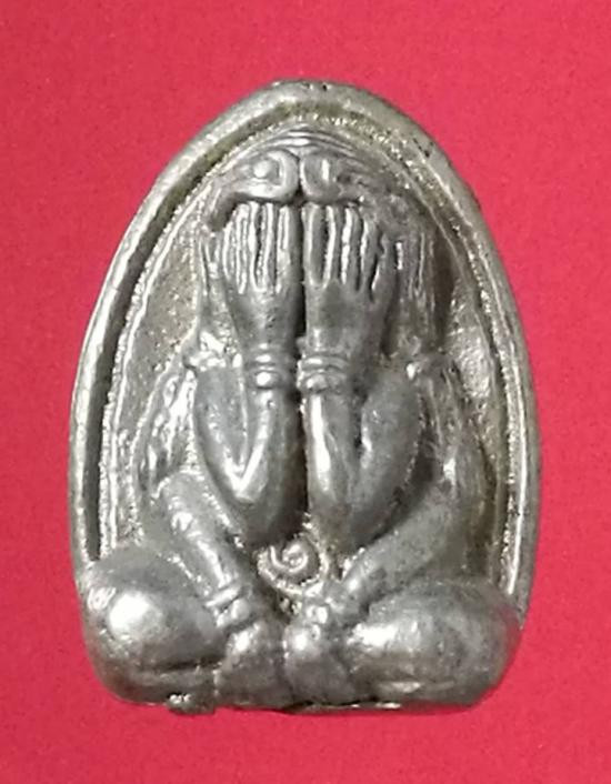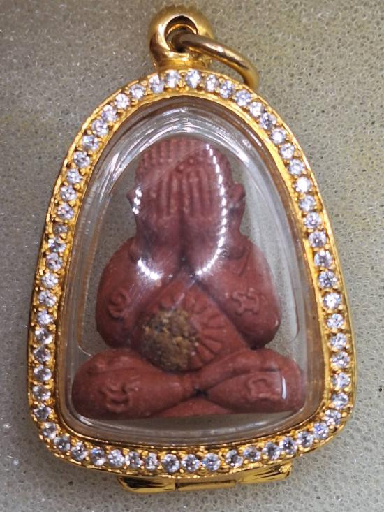 พระปิดตา รุ่น ล้าน รวย รวย หลวงปู่ศิลา สิริจันโท วัดสวนสงฆ์แกแปะ จ.กาฬสินธุ์ ปลุกเสก 9 วาระ แดงสุริยคลาสโรยตะใบทอง เลข ๔๒ |