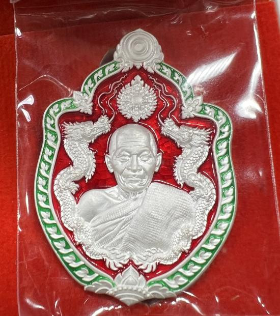 เหรียญมังกรคู่ อายุวัฒนมงคล81 หลวงปู่มหาศิลา สิริจันโท เนื้อเงิน ยาแดง กล่องครบ |
