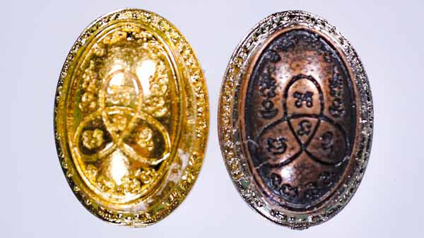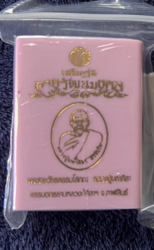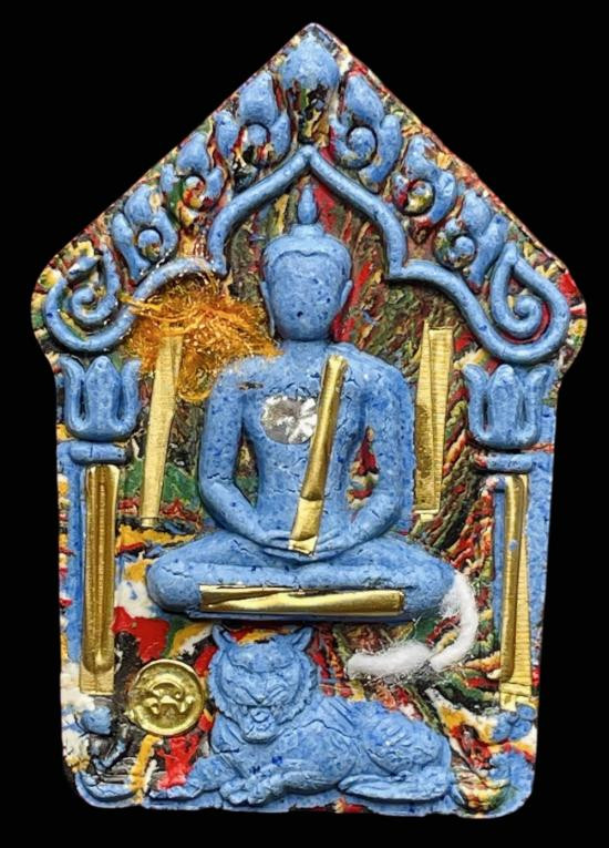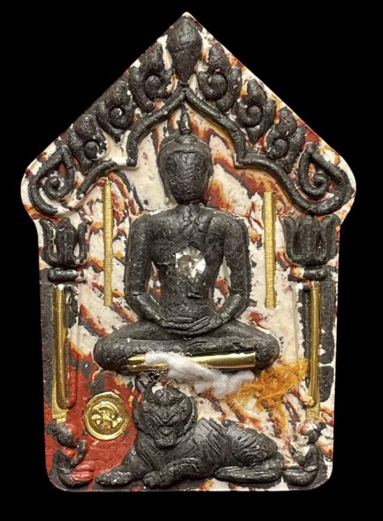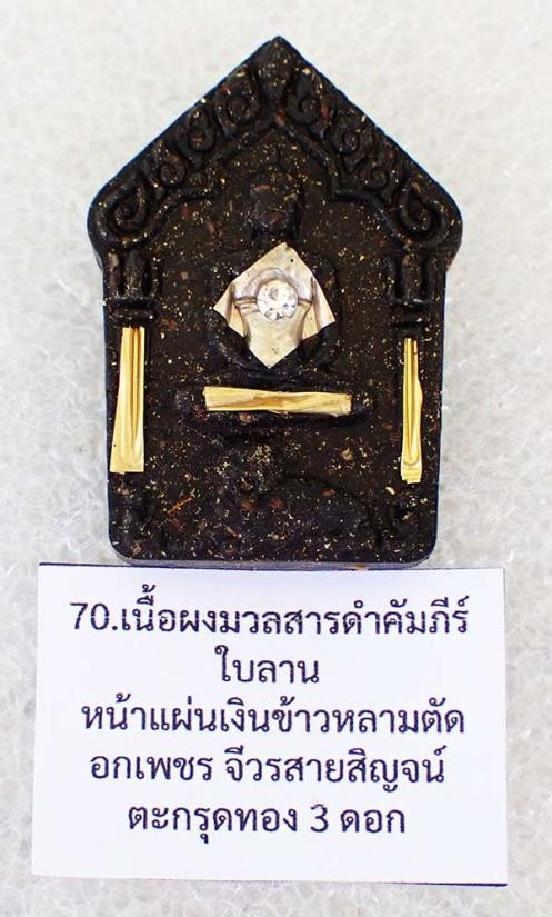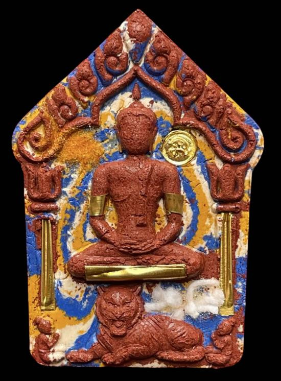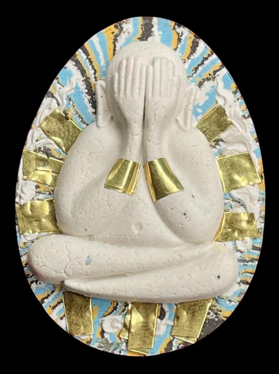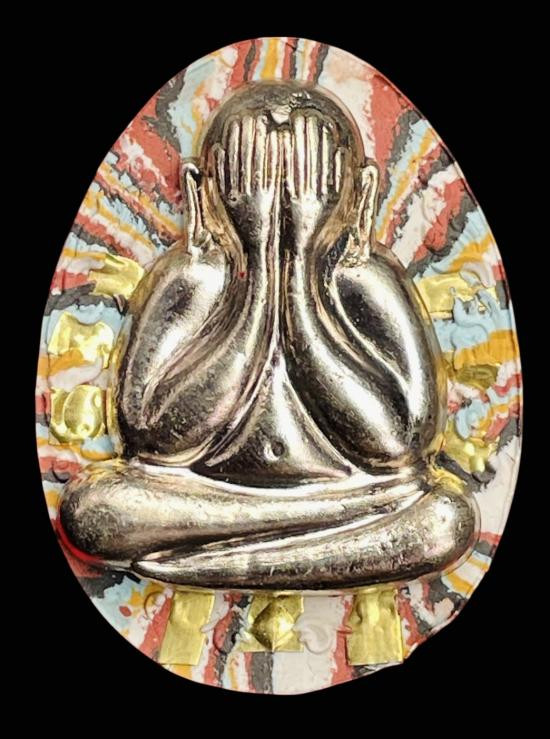 พระปิดตา รุ่น ล้าน รวย รวย หลวงปู่ศิลา สิริจันโท วัดสวนสงฆ์แกแปะ จ.กาฬสินธุ์ ปลุกเสก 9 วาระ เกษรโรยตะใบทอง เลข ๓๑ |