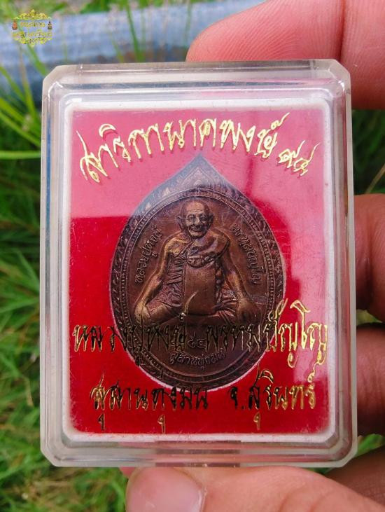 เหรียญรุ่นอายุวัฒนมงคล 81 หลวงปู่มหาศิลา สิริจันโท จ. กาฬสินธ์ุ พิมพ์เหรียญรุ่นแรกย้อนยุค เนื้อทองแดงผิวรุ้ง เลข 5279 พร้อมกล่องเดิมครับ |