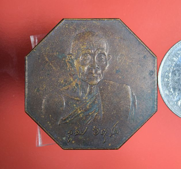 เหรียยแปดเหลี่ยม หลวงปู่ดูลย์ วัดบูรพาราม เนื้อทองแดงรมน้ำตาล ปี 2526 เคาะเดียวแดง |