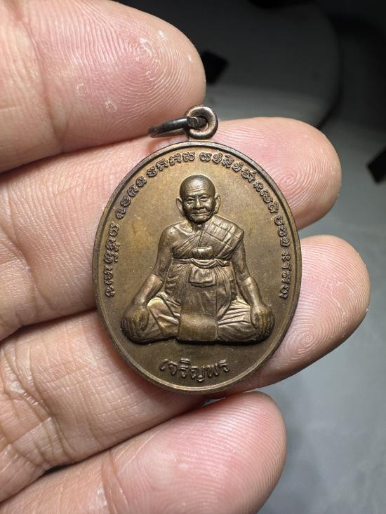 เหรียญหลวงพ่อทอง รุ่นเจริญพรล่าง ปี 2559 เนื้อทองแดงมันปู ตอก๙รอบ หมายเลข 5744 |