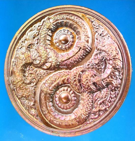 เหรียญมังกร ทองแดงผิวรุ้ง ซีนเดิมเหรียญรุ่นอายุวัฒนมงคล81 หลวงปู่มหาศิลา สิริจันโท พิมพ์ มังกรคู่(หลวงปู่ศิลา) |