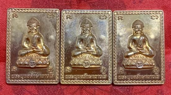 เหรียญพระพุทธรักษาถาวโร พ่อท่านผอม วัดไทรขาม จ.นครศรีธรรมราช เนื้อทองสัตตะ 3 เหรียญ |