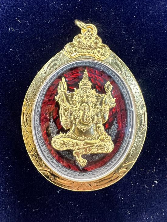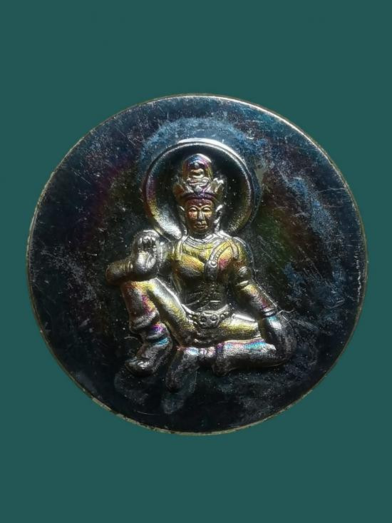 เหรียญโชคดี พญาเสือนอนกิน รุ่นแรก พระอาจารย์ประสูติ (หลวงพ่อประสูติ) วัดในเตา จ.ตรัง เนื้อทองทิพย์ลงยาแดง หน้ากากเสือโลหะอาถรรพ์ เลข 19 |