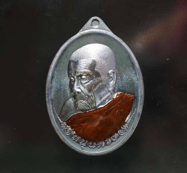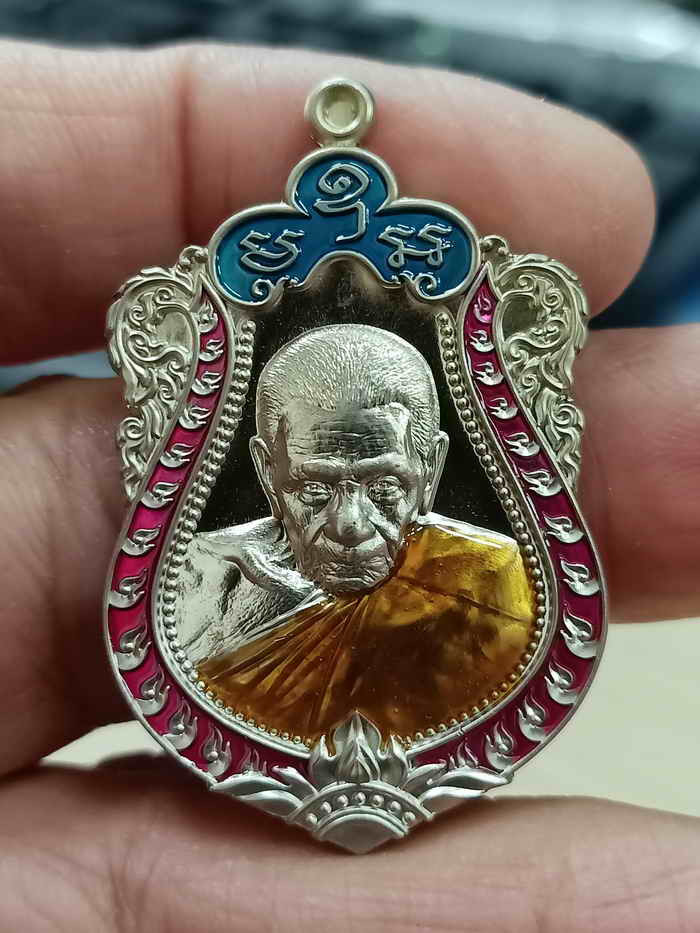 เหรียญเสมา 7 รอบ พ่อท่านเขียว วัดห้วยเงาะ จ.ปัตตานี ปี 2555 เนื้อเงินลงยา