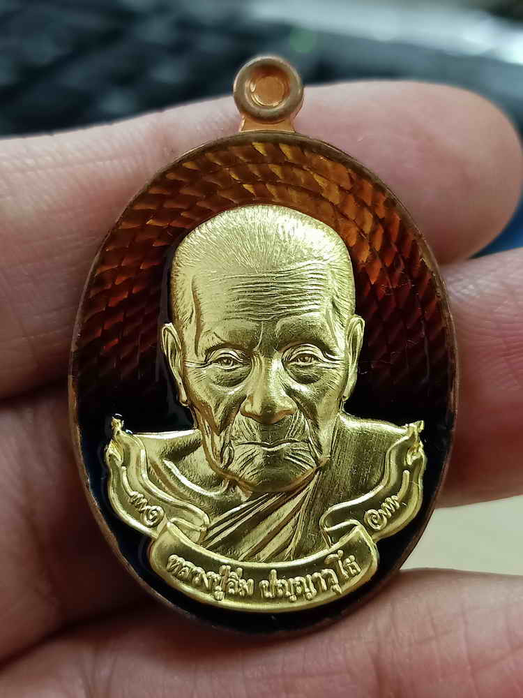 วัดใจ 100 เหรียญสาธุ 99 หลวงปู่อิ่ม วัดทุ่งนาใหม่ จ.นครศรีธรรมราช 2566 ทองแดงผิวไฟ หน้ากากทองทิพย์ ลงยา หมายเลข 32 กล่องเดิม
