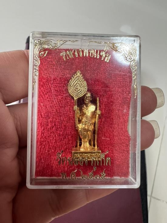 รูปหล่อหลวงพ่อแช่ม วัดฉลอง จ.ภูเก็ต นั่งเก้าอี้ ถือพัดยศ ปี 2535 กาหลั่ยทอง ก้นวงเดือน พร้อมกล่อง