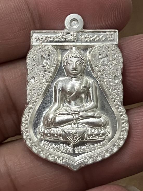 เหรียญเนื้อเงิน พุทธชยันตี 2600 ปี การตรัสรู้ขององค์สัมมาสัมพุทธเจ้า พระพุทธสิหิงค์ หลังพระบรมธาตุเจดีย์ นครศรีธรรมราช |