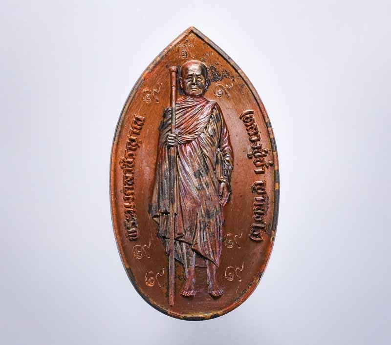 เหรียญพระลีลา พ่อท่านมุ่ย วัดป่าระกำเหนือ อ.ปากพนัง จ.นครศรีธรรมราช ปี 2534 เนื้อทองแดง |
