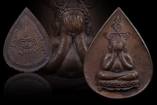 เหรียยรุ่นแรกหลวงพ่อแดง วัดคุณาราม หรือวัดเขาโป๊ะ เกาะสมุย เนื้อทองแดงและทองแดงรมดำ |