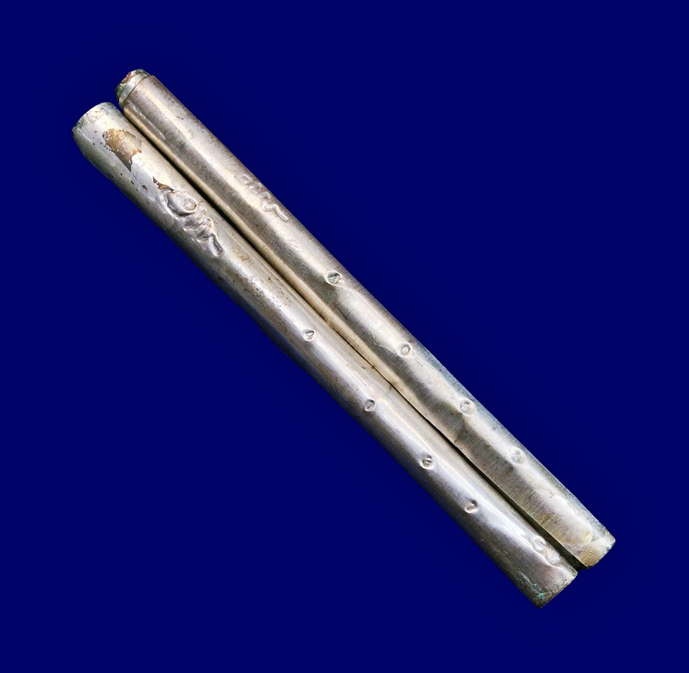 +!!เคาะเดียวllดง ตลอดสาย!!+ (เนื้อเงิน รับ 2 ดอก) ตะกรุดมหาเศรษฐี พ่อท่านสังข์ วัดดอนตรอ จ.นครศรีธรรมราช รุ่นเบ้าทุบมหาเศรษฐี ปี2540 (เนื้อเงิน ขนาดยาว 6.5 ซม.) ตอกโค้ดและเลขตามรูป สวยเดิมๆ ไม่มีกล่อง |