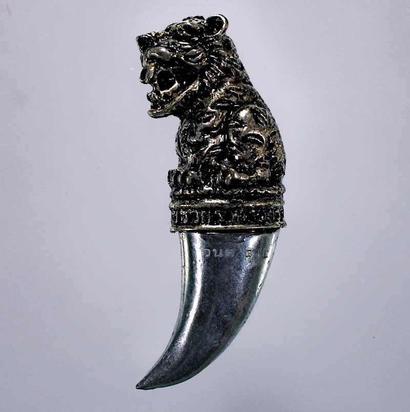 เบี้ยแก้พญาเสือนอนกิน องค์ครู รุ่นแรก พระอาจารย์ประสูติ วัดในเตา เนื้อนวะพรายเงินหน้ากากเงิน จารยันต์