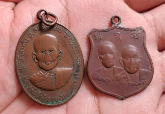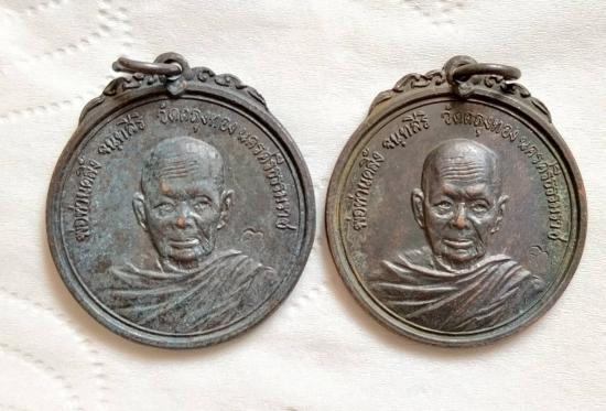 เหรียญ"รุ่น 2" หลวงปู่เขียว วัดหรงบน จ.นครศรีธรรมราช ปี 2519 เนื้อทองแดงกะไหล่ทอง |