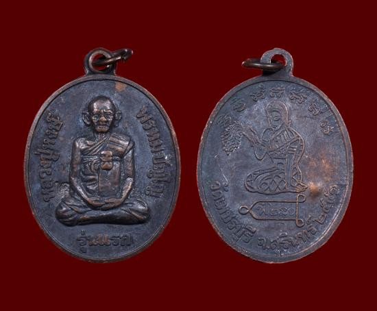 เหรียญพ่อท่านแก่น วัดทุ่งหล่อ เนื้อทองแดง ห่วงเดิม ปี2518 จ.นครศรีธรรมราช + บัตรG-pra สภาพสวยเดิมค่ะ |