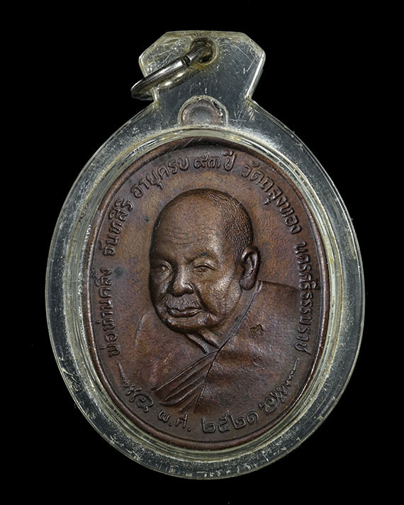 เหรียญพ่อท่านคลิ้ง วัดถลุงทอง พิมพ์หลัง ภปร.หลังขีด เนื้อทองแดง ปี 2521 จ.นครศรีธรรมราช (พร้อมบัตรรับรองฯ) |