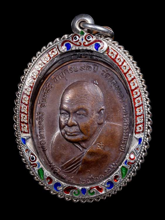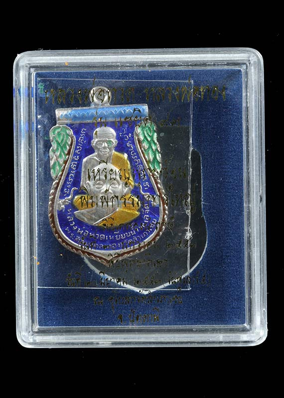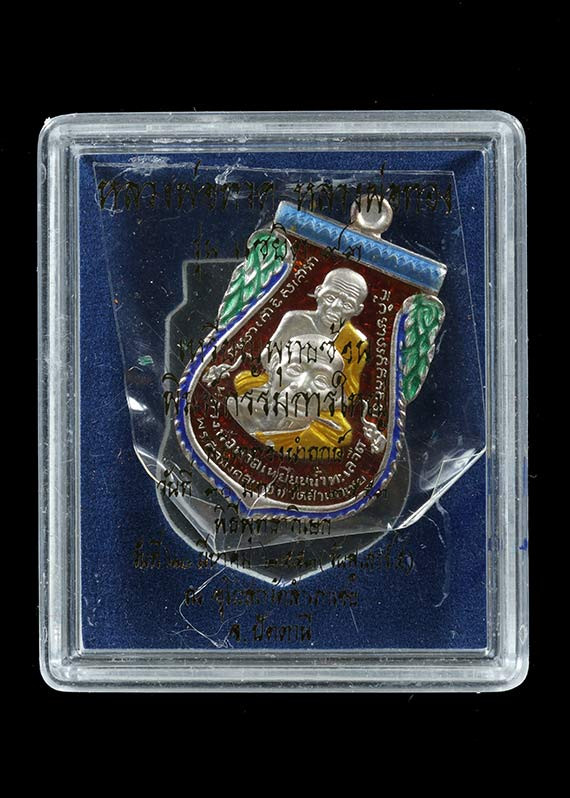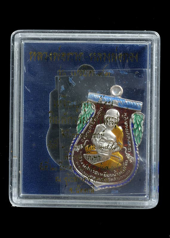 เหรียญ ลพ. ดำ วัดตุยง ปัตตานี ปี 2520 พร้อมเลี่ยม |