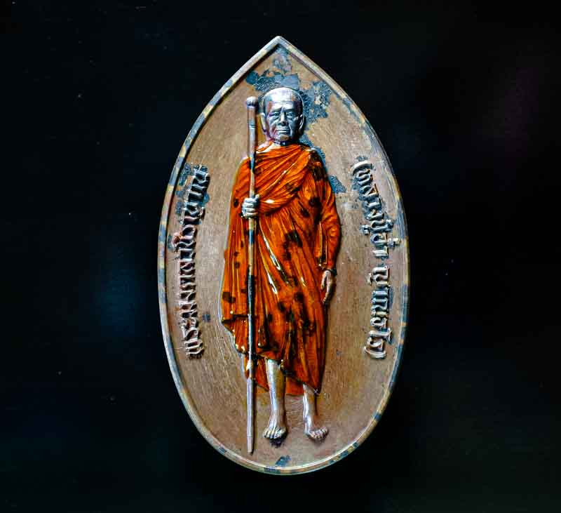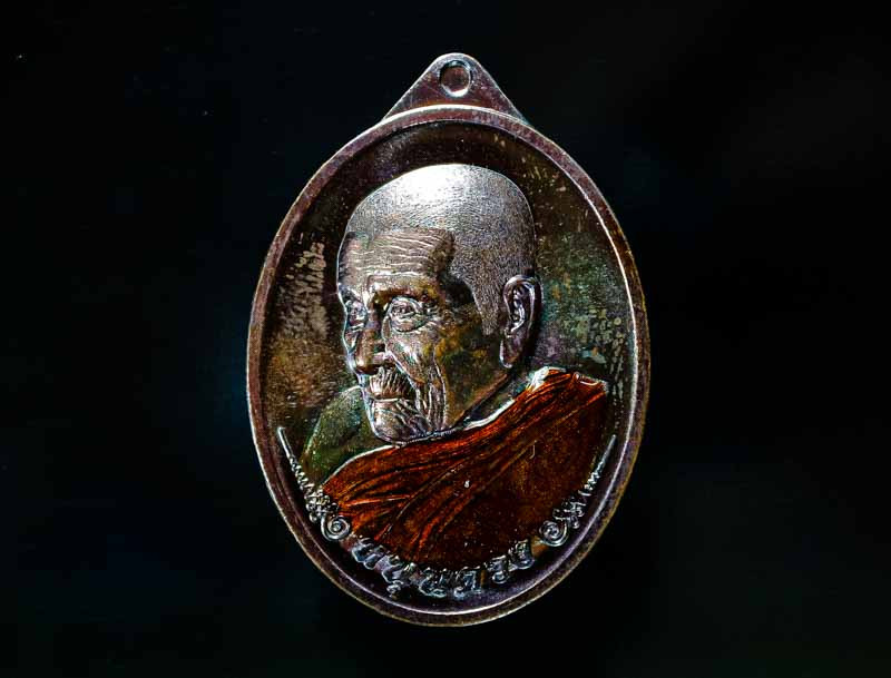 เหรียญเหนือดวง หลวงปู่อิ่ม วัดทุ่งนาใหม่ เนื้อทองแดงหน้ากากฝาบาตรลงยา สวยเดิมๆพร้อมกล่องคับ |