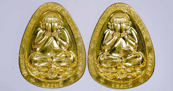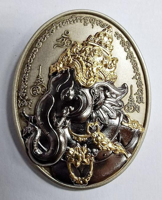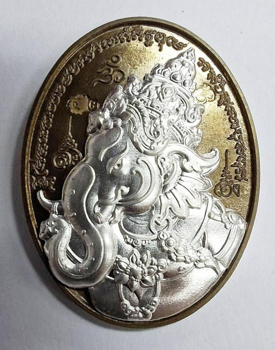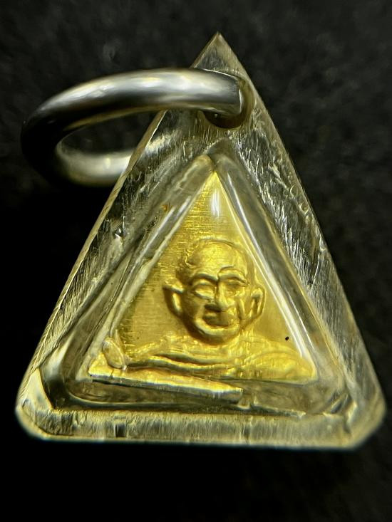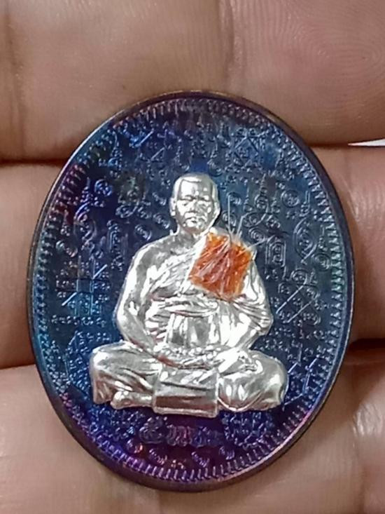 เหรียญรุ่น 5 แชะศัตรูพ่าย หลวงพ่อประสูติ ปิยธัมโม วัดถ้ำพระพุทธโกษีย์(วัดในเตา) จ.ตรัง เนื้อนวะรุ้งหน้ากากเงิน ติดจีวร ติดเกศา หลังหน้ากากชุบทอง จอกโค๊ต กรรมการ ตอกหมายเลข 4 |