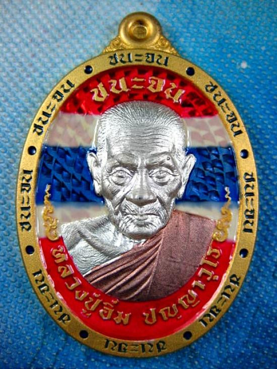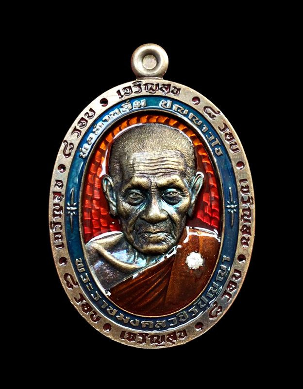 *เหรียญเสมาอายุยืน115ปี หลวงปู่อิ่ม วัดทุ่งนาใหม่ ด้านหน้า พ่อท่ายคล้าย วาจาสิทธิ์ หลังหลวงปู่อิ่ม เนื้อทองทิพย์ลงยา |