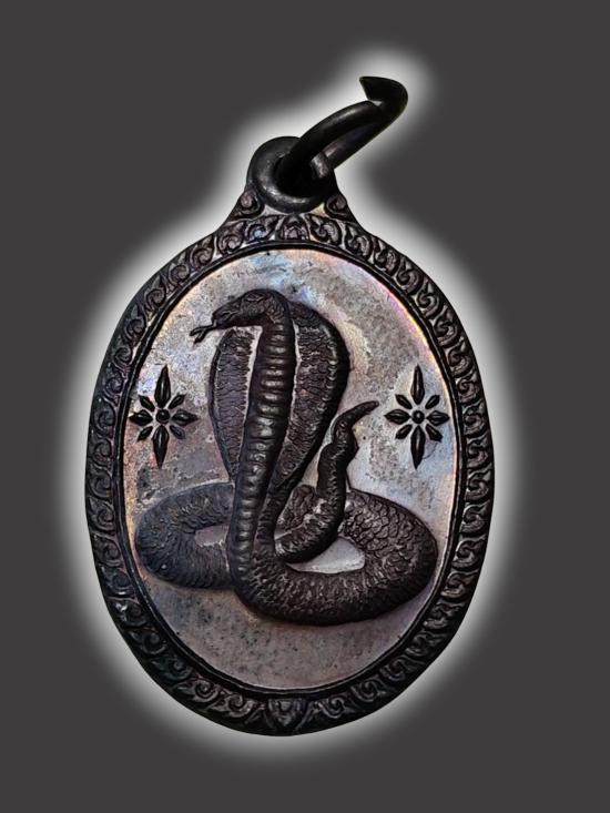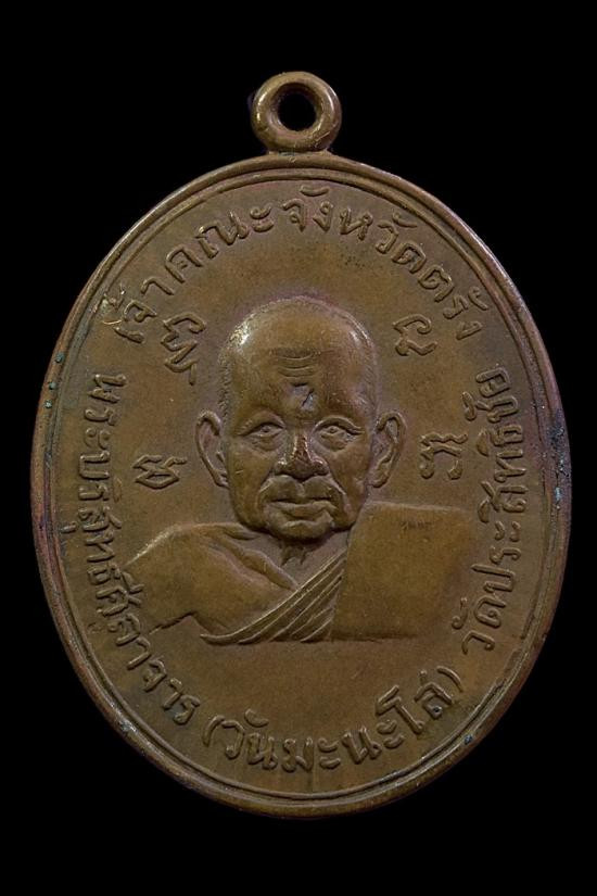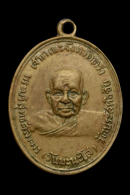 เหรียญรุ่นแรก หลวงพ่อขวัญ วัดสุมณฑาราม (วัดท้องอ่าว) พ.ศ.2518 เนื้อทองแดงรมดำ |
