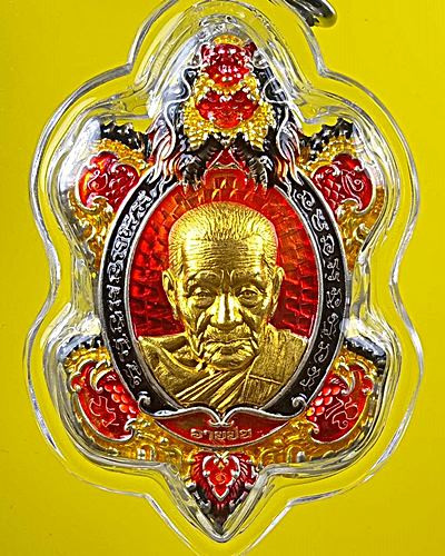 *เหรียญเสมาอายุยืน115ปี หลวงปู่อิ่ม วัดทุ่งนาใหม่ ด้านหน้า พ่อท่ายคล้าย วาจาสิทธิ์ หลังหลวงปู่อิ่ม เนื้อทองทิพย์ลงยา |