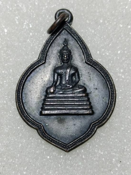 เหรียญหล่อ เนื้อทองผสม พระพุทธชินราชท่าเรือ พิมพ์ปรกโพธิ์ นครศรีธรรมราช หลัง มีจารมือ |