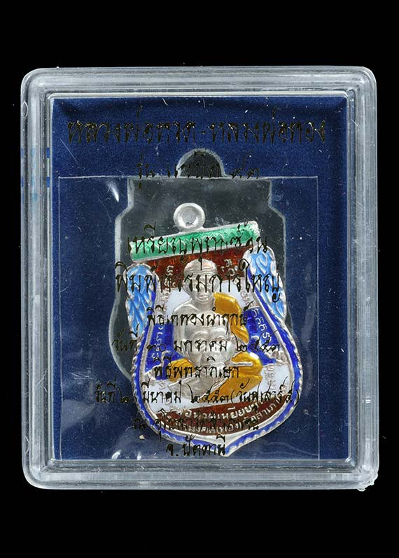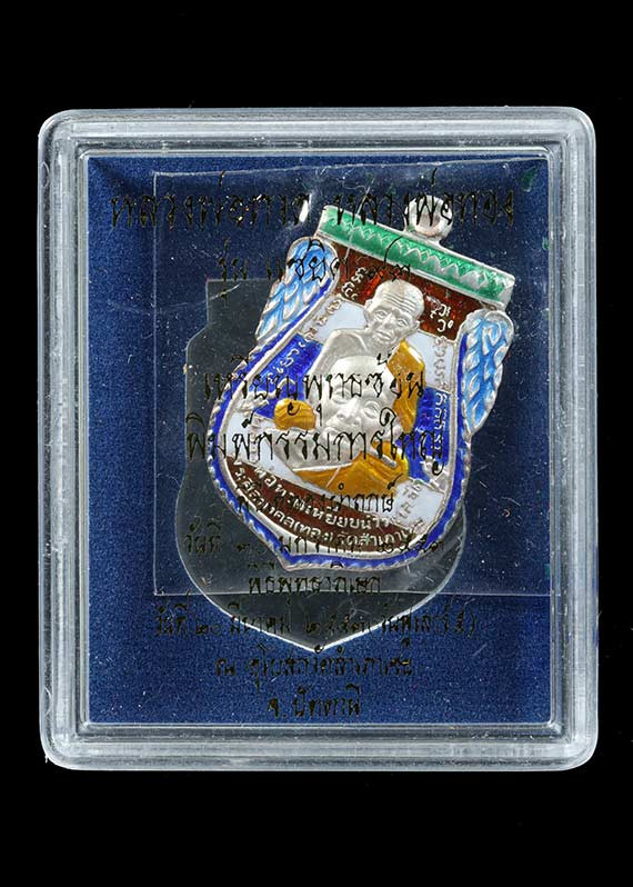 เหรียญหลวงพ่อประสูติ ปิยธัมโม วัดในเตา(วัดถ้ำพระพุทธโกษี จ.ตรัง เนื้อเงินลงยาแดงหลังลงยา หน้ากากทองคำแท้ เลี่ยมกรอบทองอิตาลีพร้อมสร้อยทอง(ทองไม่แท้) |