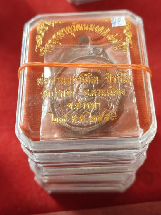 วัดใจเคาะเดียวแดงจ้า ชุดกรรมการ รวยหมื่นล้าน หลวงปู่อิ่ม วัดทุ่งนาใหม่ สร้าง9ชุด ชุดนี้หมายเลข9ทั้งชุด เนื้อนวะชุบทองขาว พร้อมตลับชุบทองฝังเพชร เคาะเดียวแดงจ้า |