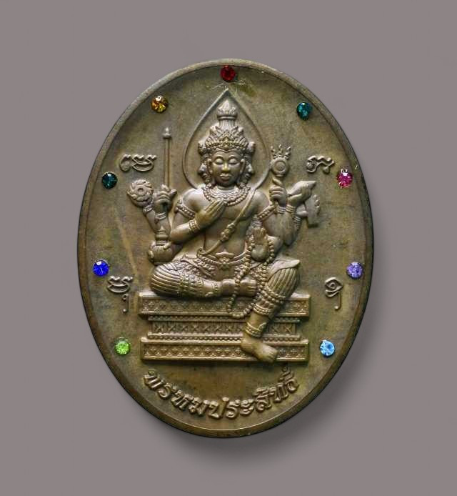 เหรียญพระพรหมประสิทธิ์ รุ่น สมปรารถนา ๑๖๘ หลวงปู่อิ่ม วัดทุ่งนาใหม่ นครศรีธรรมราช ปี2566 เนื้อมหาชนวนฝังพลอยนพเก้า สร้าง 999 เหรียญ |