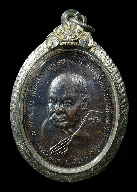 100-.เหรียญพ่อท่านแก่น วัดทุ่งหล่อ จ.นครศรีธรรมราช อายุครบ 72 ปี พ.ศ.2521 เนื้อทองแดง |