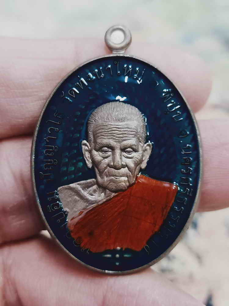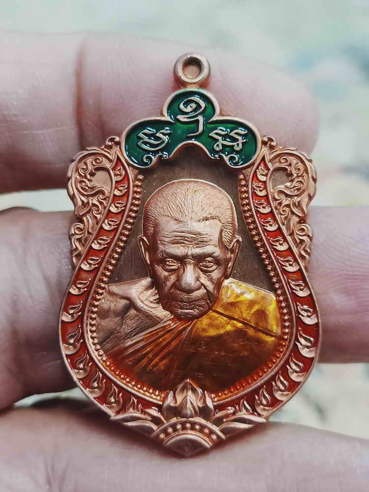 เหรียญเหนือดวง หลวงปู่อิ่ม วัดทุ่งนาใหม่ เนื้อทองแดงหน้ากากฝาบาตรลงยา สวยเดิมๆพร้อมกล่องคับ |