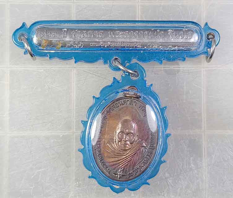 เหรียญ พ่อท่านจรูญ วัดเขาเมือง เนื้อ ชนวน ห่มเฉียง หลังยันต์ |