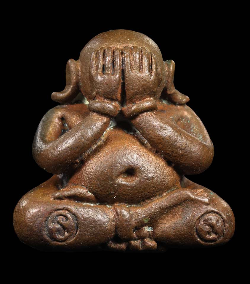 ........เคาะเดียวแดง........พระปิดตามหาจักรีหลวงพ่อท่านคลิ้ง วัดถลุงทอง นครศรีธรรมราช ปี 2525 เนื้อนวโลหะ |