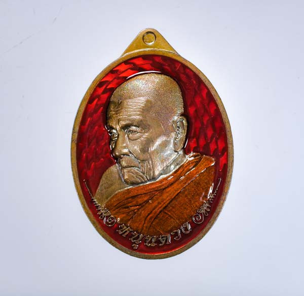 เหรียญเหนือดวง หลวงปู่อิ่ม วัดทุ่งนาใหม่ เนื้อทองแดงหน้ากากฝาบาตรลงยา สวยเดิมๆพร้อมกล่องคับ |