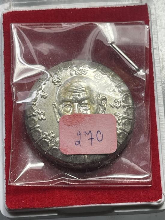 เหรียญตลับยาหม่อง เนื้อเงิน ด้านหลังติดหนังเสือ พ่อท่านผ่อง วัดแจ้ง 270 |