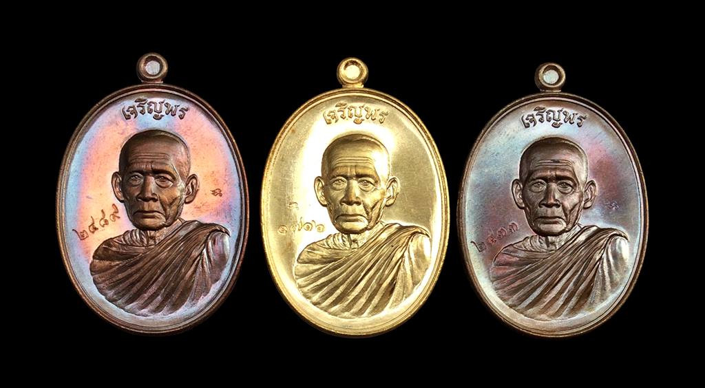+!!เคาะเดียวllดง ตลอดสาย!!+ (รับชุด 3 เหรียญ) เหรียญ เจริญพร(บน) หลวงพ่อโปร่ง วัดถ้ำพรุตะเคียน จ.ชุมพร ปี57 (เนื้อสัตตะ+ทองแดง) ตอกโค้ดและเลขสวยๆตามรูป พร้อมกล่องเดิมครับ |