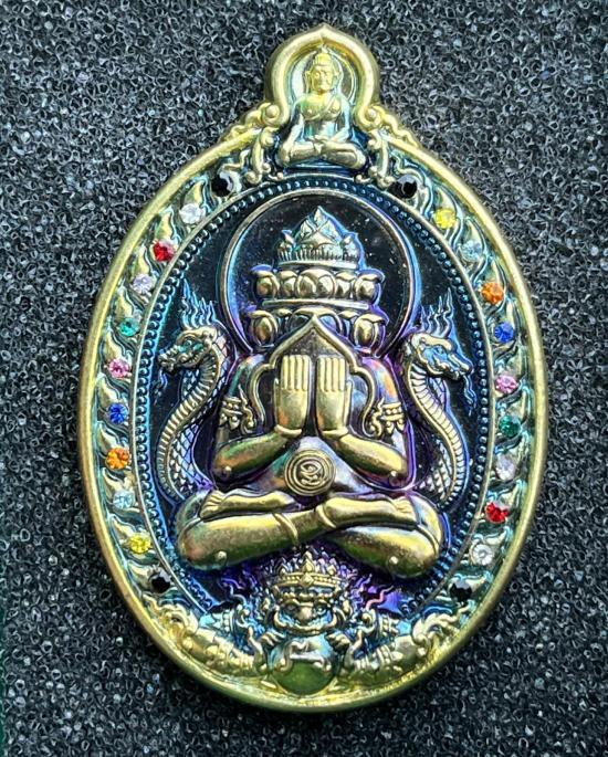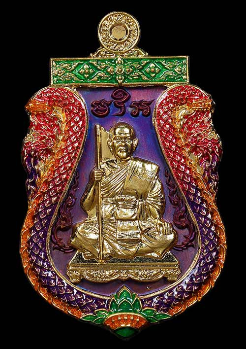 เหรียญพระพิฆเนศ หลัง พระพรหม เนื้อชนวนลงยาธงชาติแนวเอียง หน้ากากชุบทอง ตอกโค๊ต โอม ตอกหมายเลข 24 รุ่นอิ่มทรัพย์ หลวงปู่อิ่ม วัดทุ่งนาใหม่ นครศรีธรรมราช |