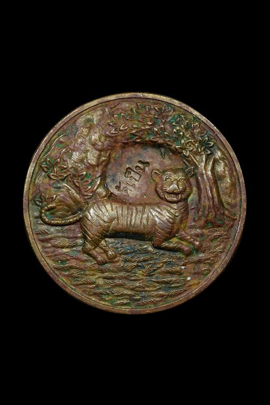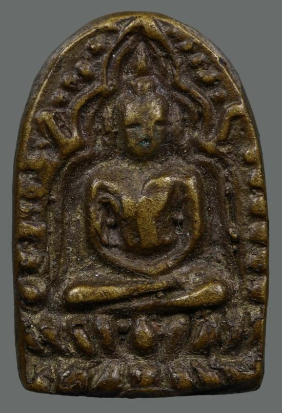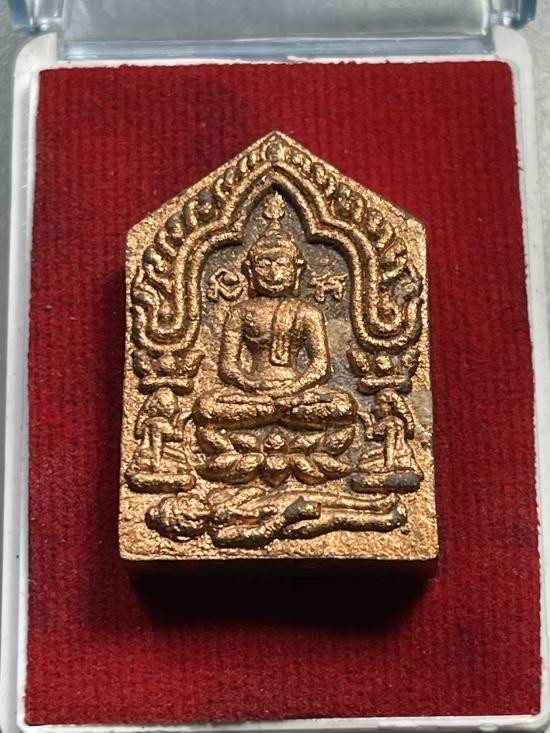 พระปรกใบมะขาม หลัง ภปร. พ่อท่านคลิ้งปลุกเสก ปี ๒๕๓๐ เนื้อทองแดง (เนื้อธาตุกายสิทธิ์) ตอกโค๊ตด้านหลัง |